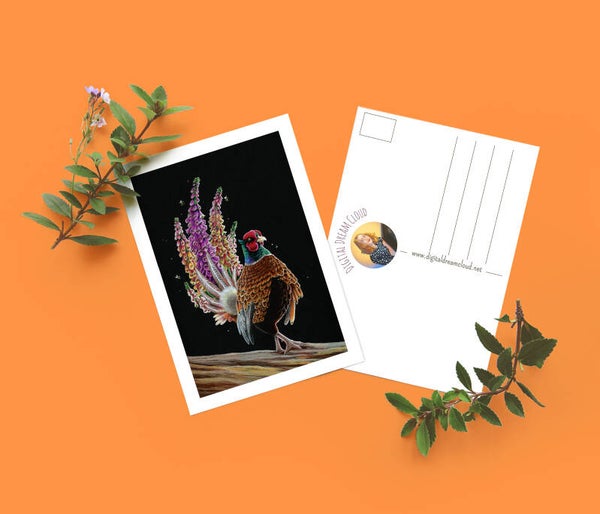 Pheasant digitalus, handgemaakt, ansichtkaart, 148x105 mm (5.8x4.1 inch)