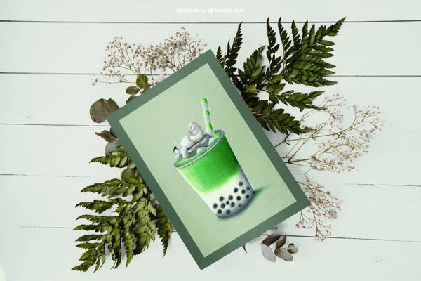 potlood kaart | cottagecore kaart | goblincore kaart | ijsbeer | matcha | bubble thee | thee liefhebber | dierenkaart | verjaardagskaart | drankje | verjaardagskaart | berenliefhebber | kinderkaart | penguin | grappige kaart