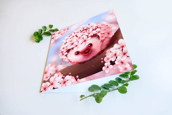 Red Anemonehog Flowerhog egelkaart 135x135mm gevouwen.