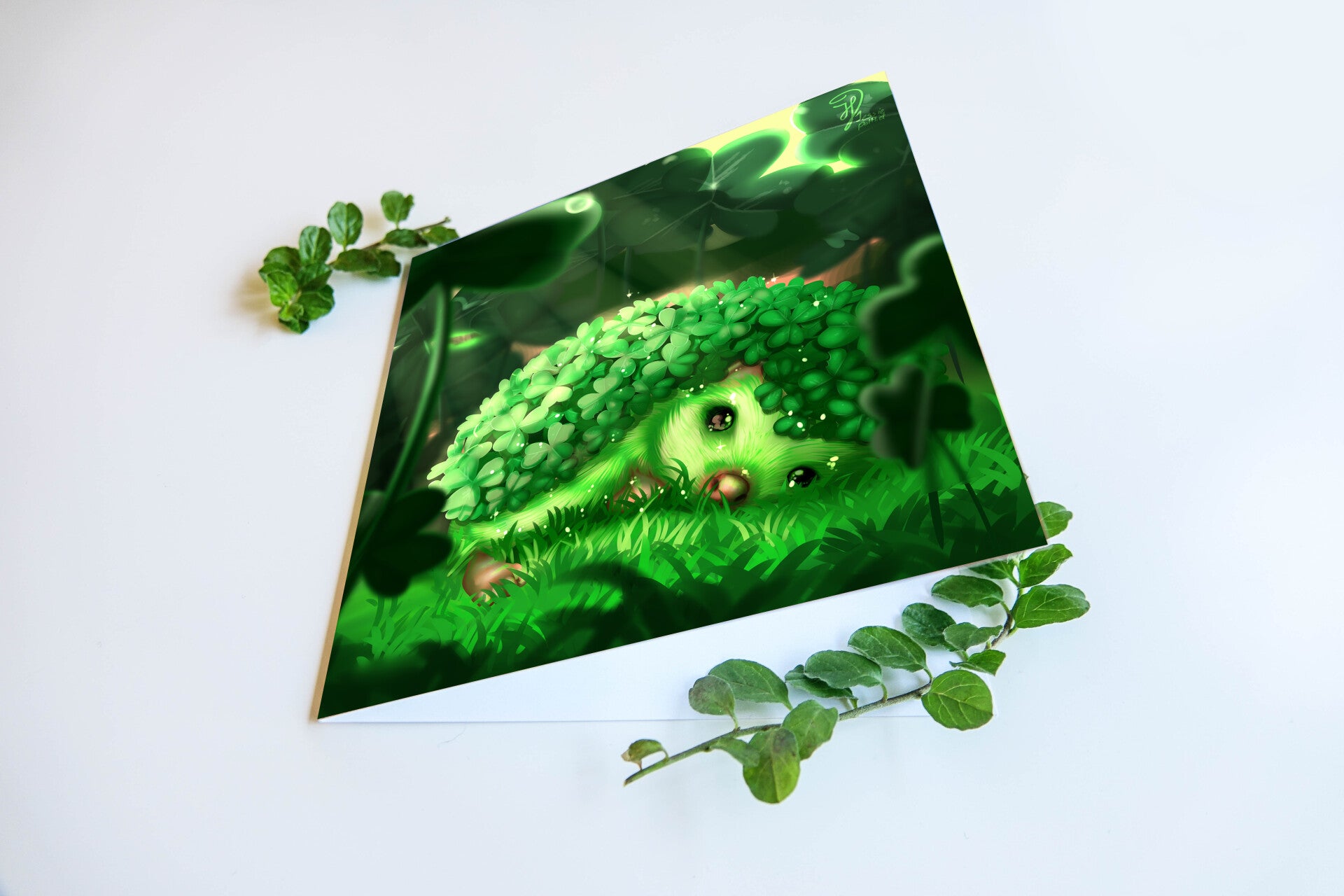 Egel kaart met White Anemonehog design. Getekend in ClipStudioPaint.