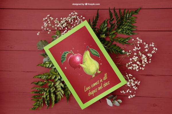 grappige kaart | fruit | fruitpun | tekst | valentijnskaart | liefde | appel | peer | rode kaart | appel en peer | potlood