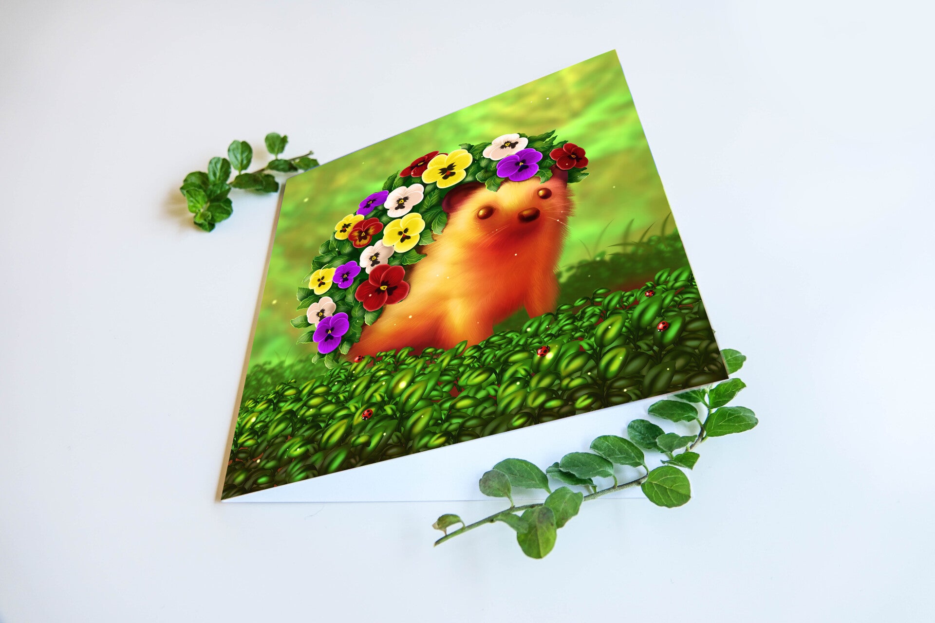 Egel kaart met Orange lilyhog design. Getekend in ClipStudioPaint.