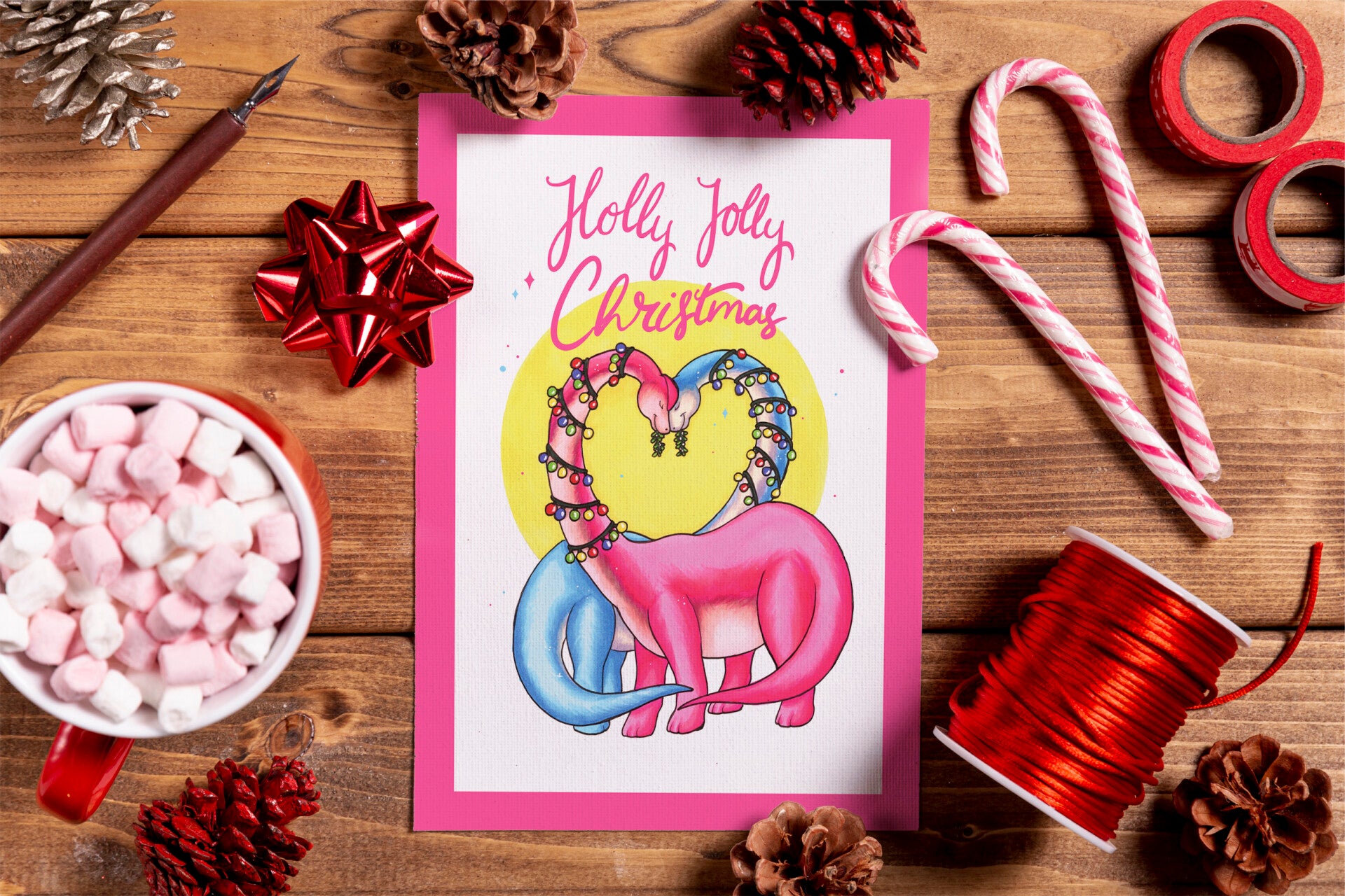 kerstkaart | kerst | dino | dinosaurussen | dino stationary | feestdagen | unieke kerstkaarten | kersttrui | handgemaakt |