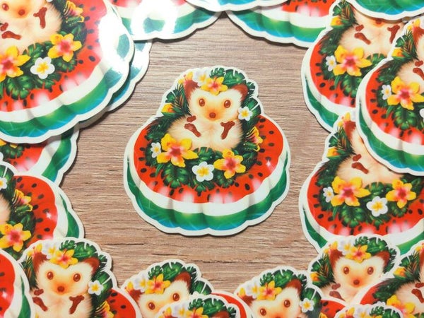 Bloemen hibiscus egel sticker, watermeloen, zomer, journaling, scrapbooking, egel liefhebber, floral kado 7x7 cm (2.75x2.75 inch)