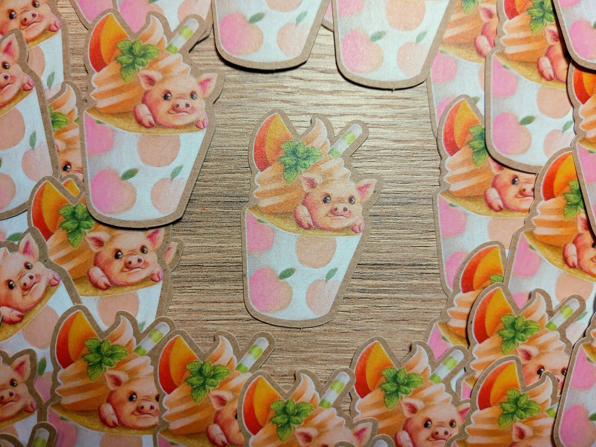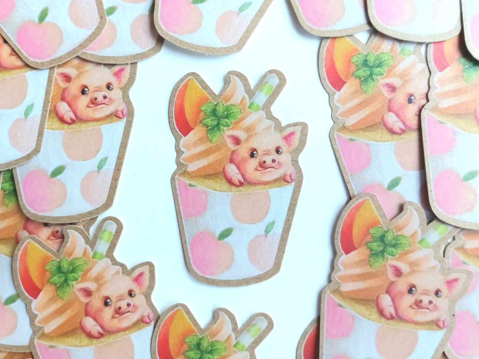 Varken perzik cupcake sticker kraftpapier, dieren liefhebber, handgemaakt, stationary scrapbooking, journaling 3,9x6 cm ( 1.18x2.36 inch)