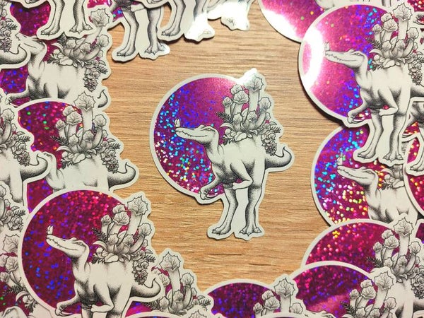 Een leuke glitter bloemen dino sticker. Vleesetende plant. Dit prachtige maar duurzame materiaal geeft de stickers een opvallende glitter look die de aandacht trekt.
