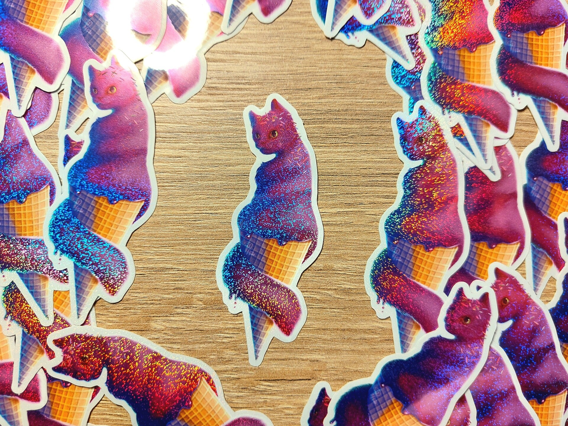 Een leuke glitter katten ijsje sticker. Dit prachtige maar duurzame materiaal geeft de stickers een opvallende glitter look die de aandacht trekt.