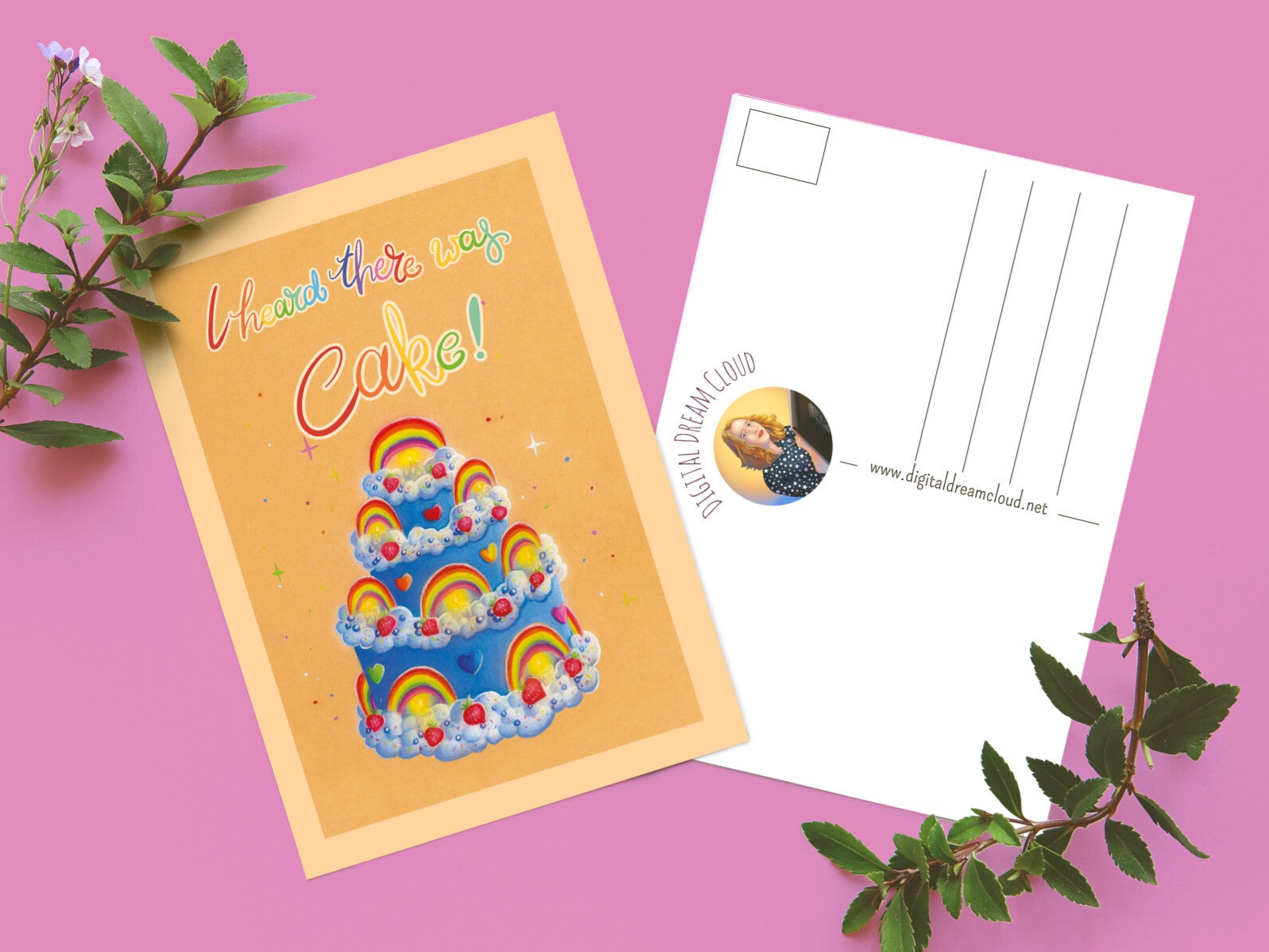 Verjaardags taart | verjaardags kaart | I heard there was cake | handlettering | regenboog |