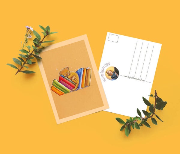 poes | poezen | kat | katten | boeken | boekennerd | boeken liefhebber | boeken kado | boeken kaart | verjaardags kaart | dieren | potlood | handgemaakt | schattig