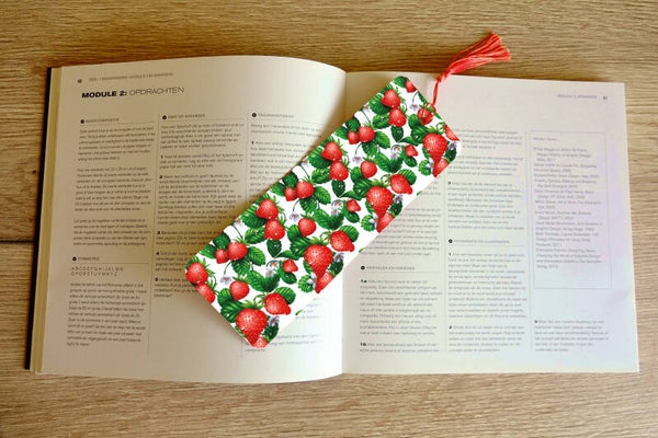Is dubbelzijdig bedrukt en heeft een kwastje dat uit het boek kan steken. (Kleur van het kwastje is willekeurig.)