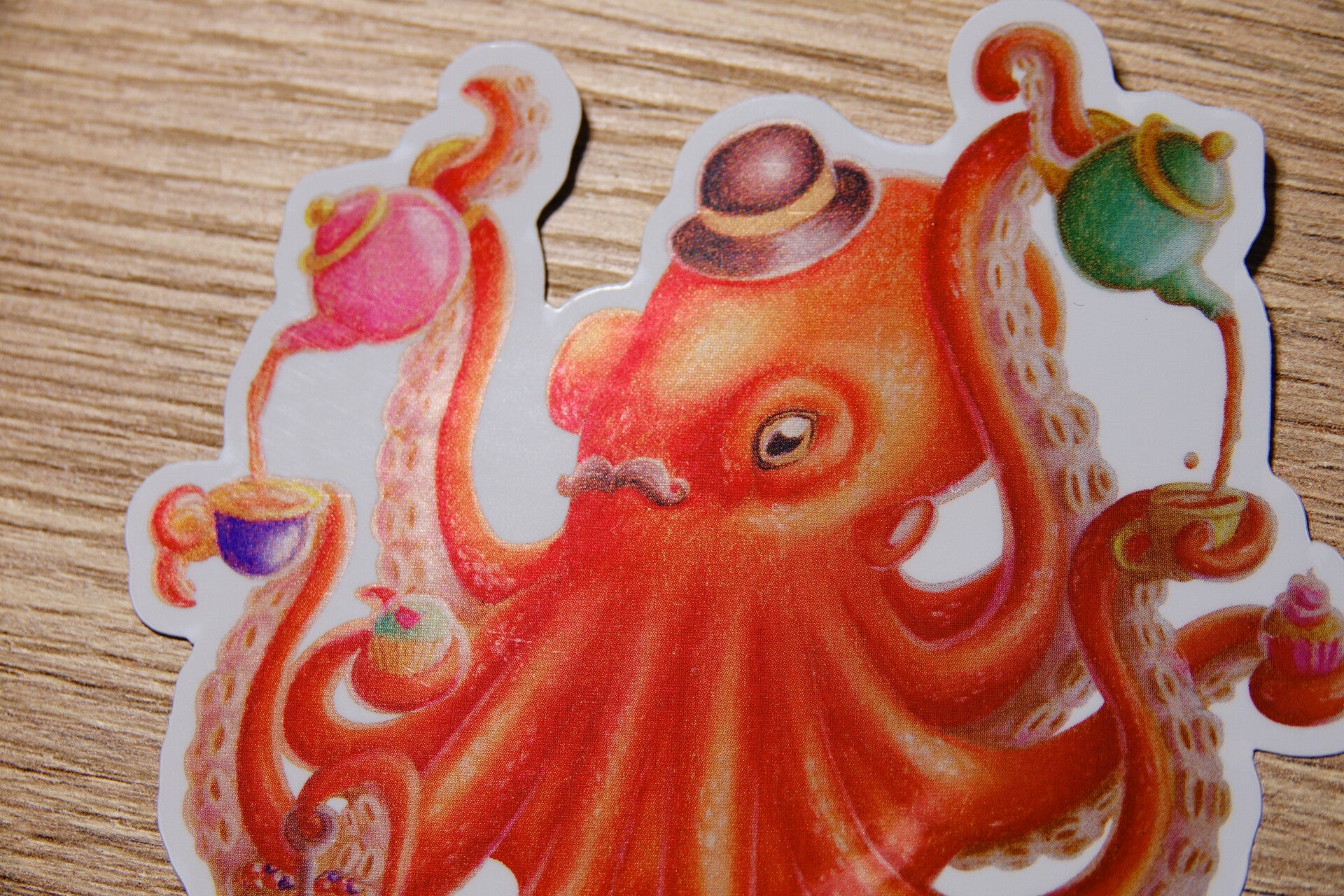 Octopus, high tea, thee liefhebber, potlood, glitter sticker, laptopsticker, mobiele sticker, vaatwasser proof, handgemaakt, funny sticker, Pixie Dust / Glanzend