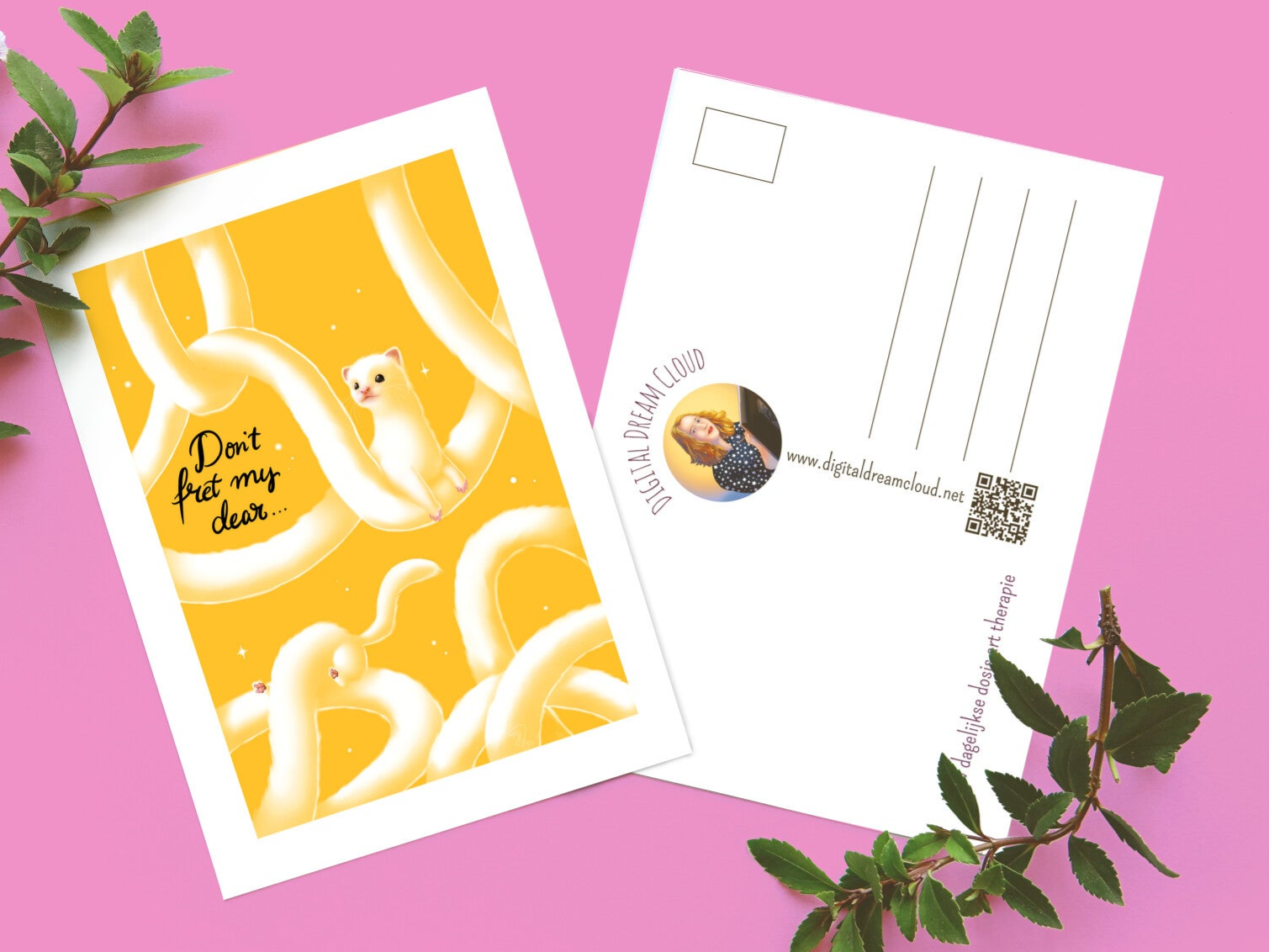 A6 formaat (randloos), in kleur dubbelzijdig geprint op 270 grams klassiek tinteretto gesso papier. Heeft een textuur dat lijkt op waterverf papier.