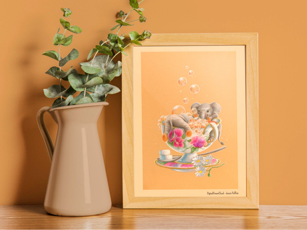 Elephanto bubbles, art print, 14,8x21 cm(5.8x8.2 inch)
