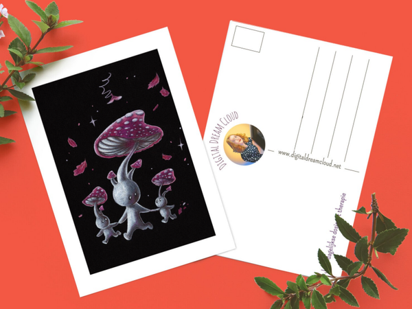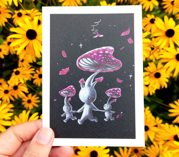 Paddestoelen | herfst vibes | cottagecore | familie | schattig | | verjaardags kaart | beige