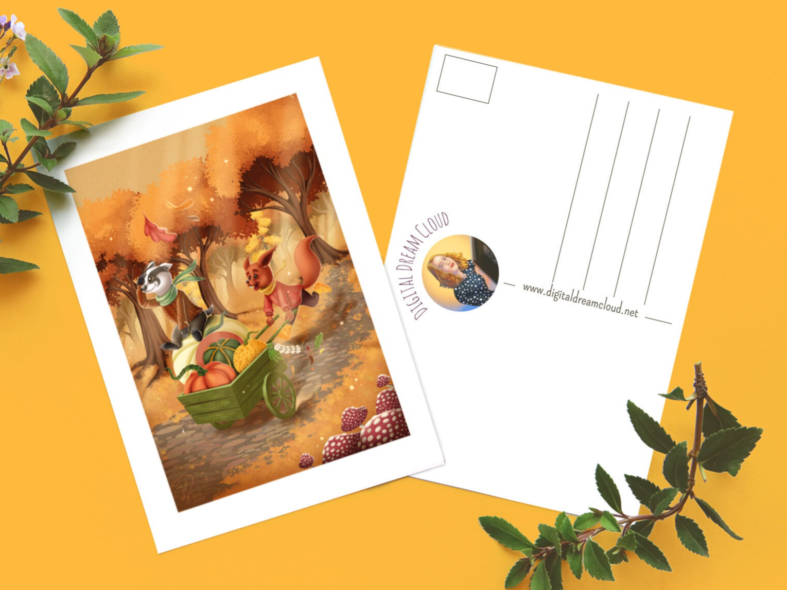 pompoenen | herfst | eekhoorn | das | kinderkaart | bos | kaart | opleukertje | cottagecore