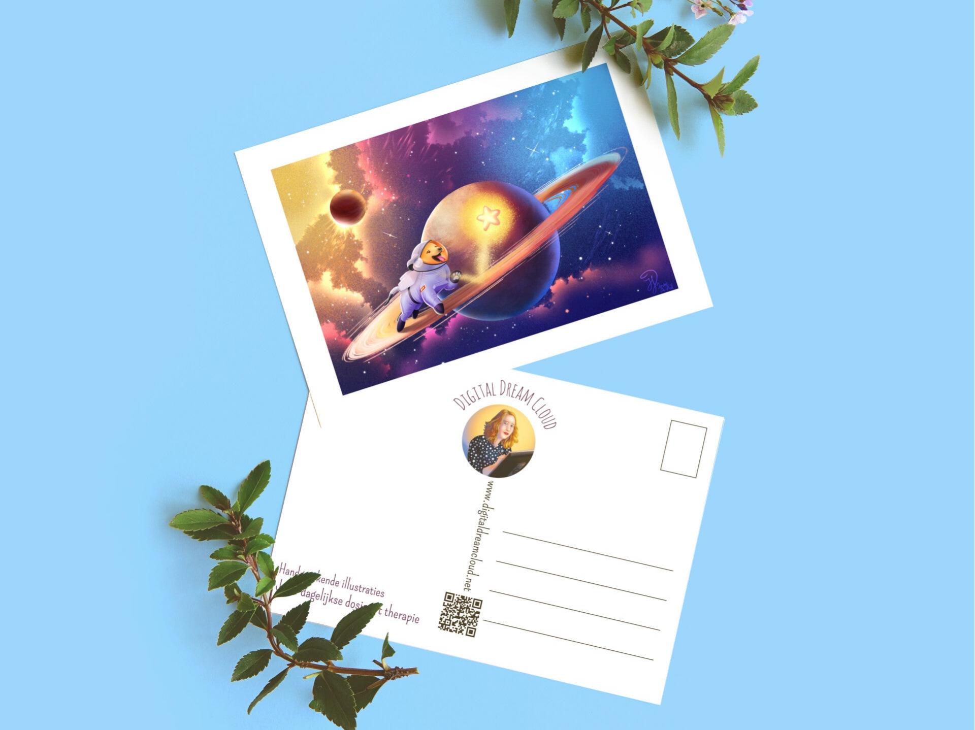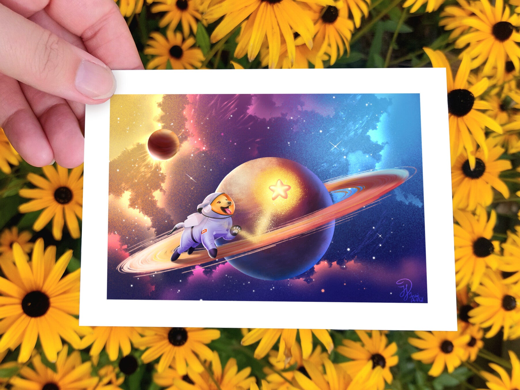 hond | ruimte | planeten | dieren | astronaut | kaarten | handgetekende kaarten | digitale illustratie | sterren