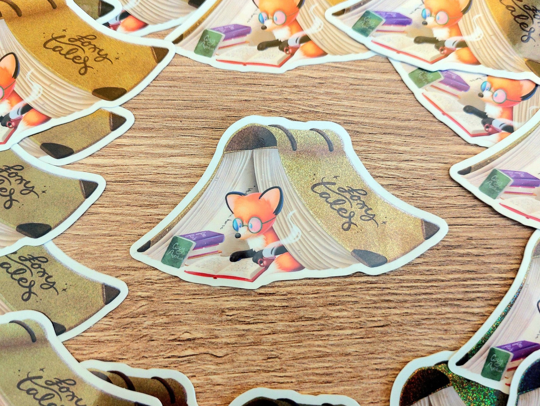 Een vosje die geniet van een theetje en een goed boek. Geschikt voor scrapbooking, journaling, voor in je notitieboek of gewoon als cadeau voor een draken of dnd liefhebber. Sticker heeft glitter effect.